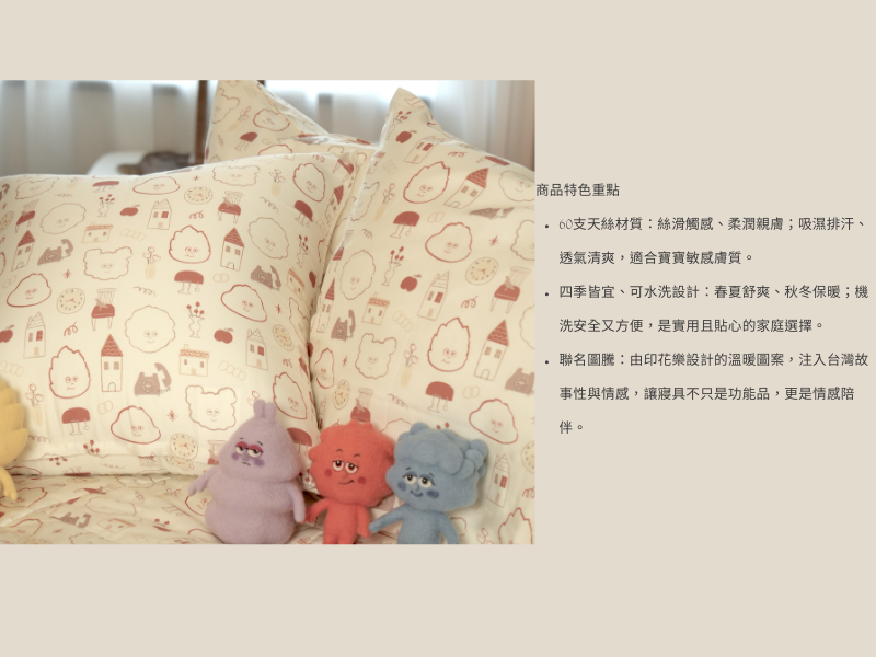 材質:同款天絲布料,手感柔軟,孩子安心擁抱。